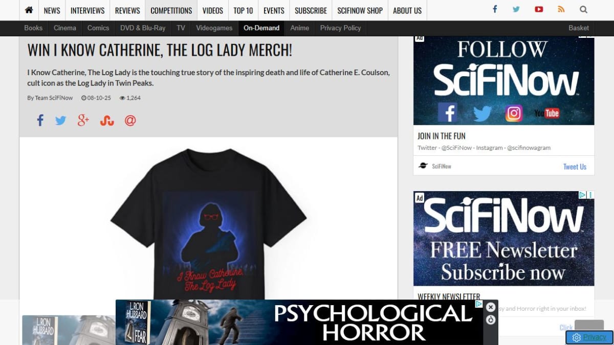 Four lucky winners will receive a T-shirt celebrating the release of the touching true story about actor Catherine Coulson and her iconic role as the Log Lady in Twin Peaks. The prize is related to the film highlighting her talent and lasting impact.