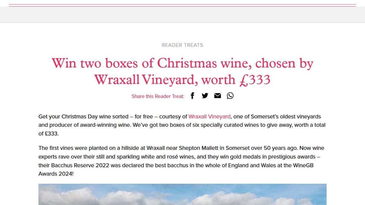 Two lucky readers will each win a curated box of six specialty Christmas wines, one valued at £164 and the other at £169. The prize includes a mix of still, sparkling, and rosé wines designed to complement Christmas meals.