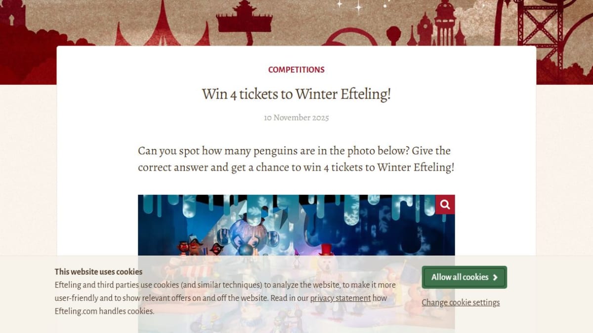 The prize consists of four entry tickets valid for use at Winter Efteling. These tickets allow access to the winter-themed offerings at the venue.