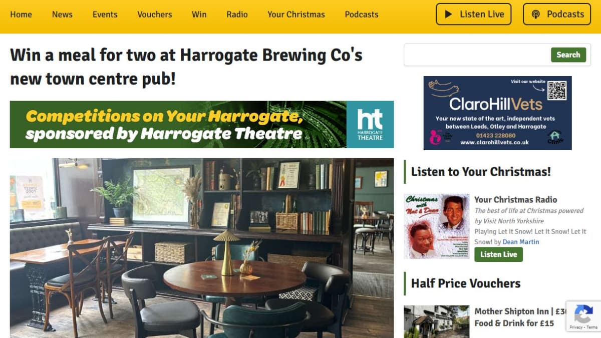 The grand prize includes a complimentary meal for two people featuring a main course, dessert, and a complimentary drink. This experience is offered in partnership with the Harrogate Brewing Co.