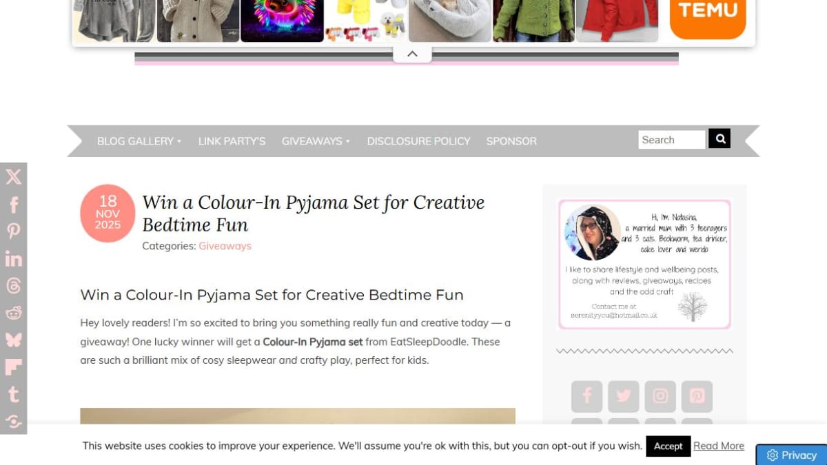One lucky winner receives an EatSleepDoodle colour-in pyjama set, available in Dinosaur or Fairytale & Legends designs. The set includes washable fabric pens, allowing the design to be coloured, washed, and repeated, and is made from 100% single jersey cotton.