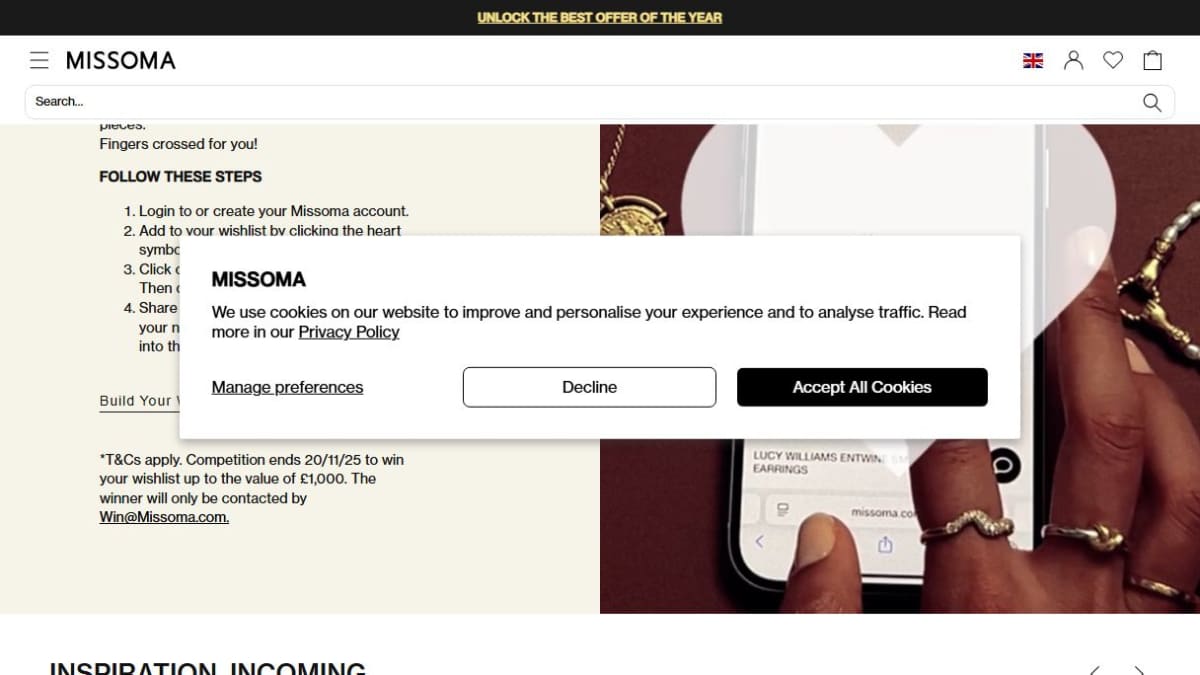 The winner will receive their most-loved pieces from the Missoma collection based on their personalized wishlist. The total value of the awarded jewellery is capped at £1,000.