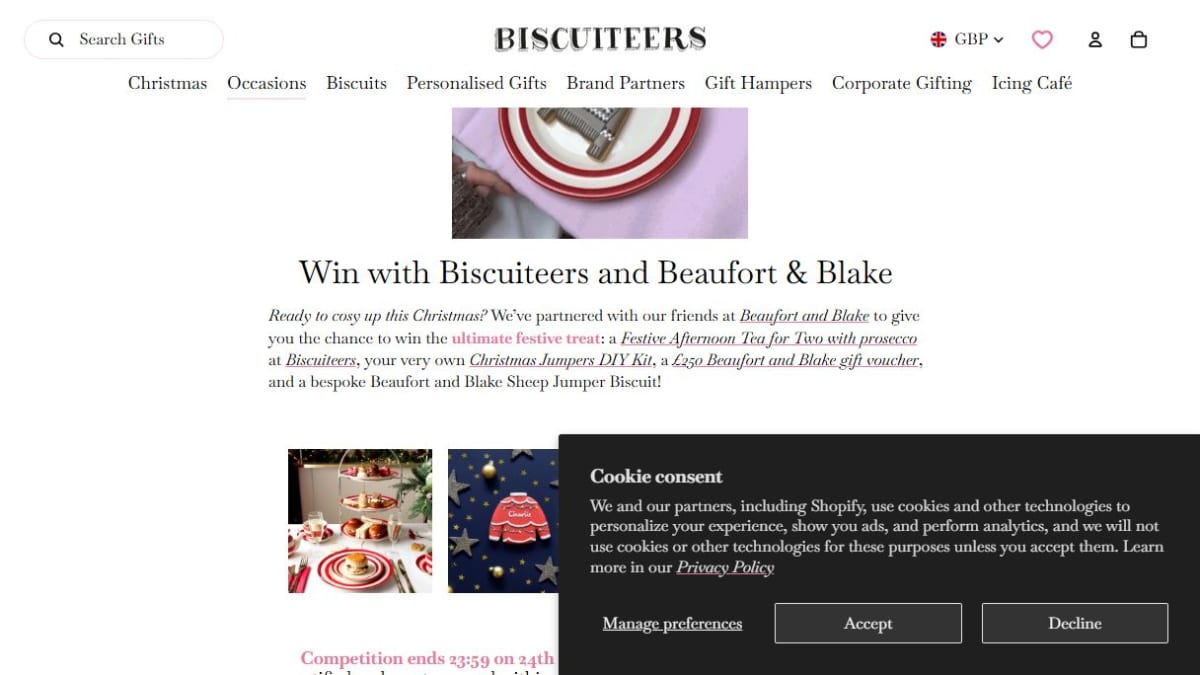 The prize includes an exclusive afternoon tea experience provided by Biscuiteers. Additionally, the winner receives a £250 voucher for use with Beaufort & Blake.