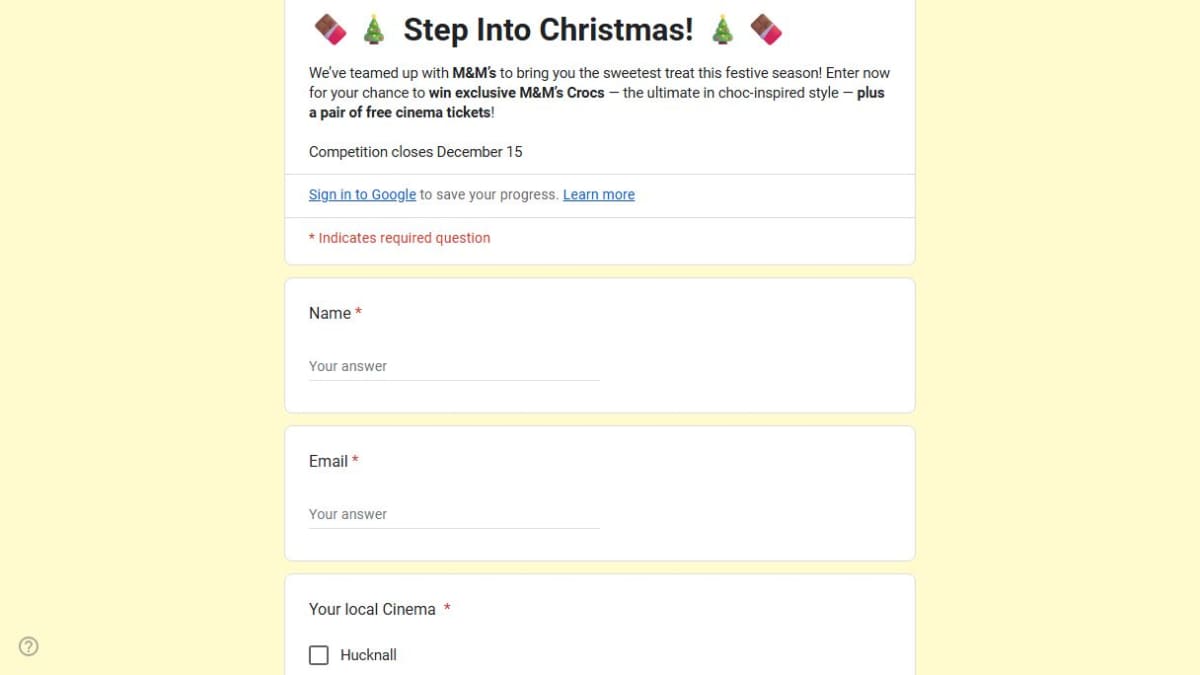 The prize includes exclusive Crocs designed with an M&M's theme. Additionally, the winner receives a pair of free cinema tickets valid at specified ARC Cinema locations.