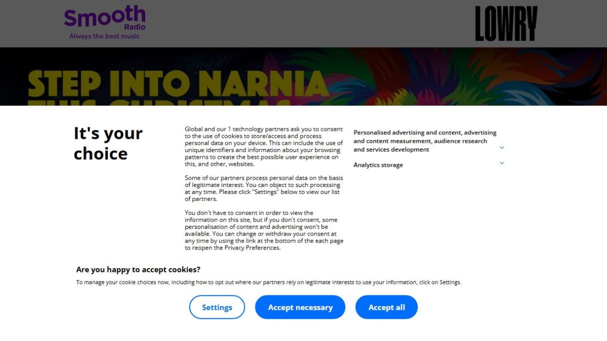 This prize includes a family ticket for four people to see The Lion, The Witch and The Wardrobe theatre production. The package also covers a family meal for four at the Lowry's waterside restaurant and an overnight hotel stay.