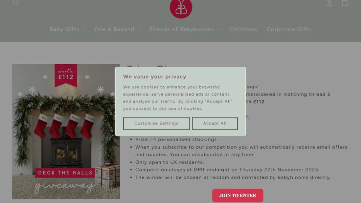 The prize includes a set of four luxurious velvet Christmas stockings. Each stocking is embroidered and personalised with a name chosen by the winner.
