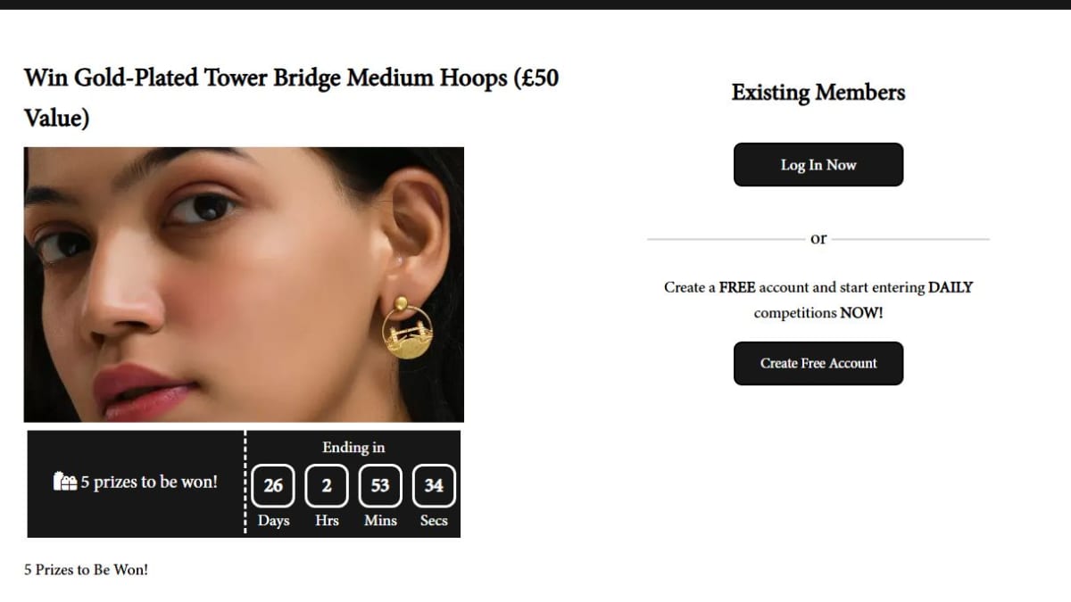Five winners will each receive one pair of handcrafted, gold-plated Tower Bridge Medium Earrings. These pieces are part of the esteemed UK Voyage Collection, designed to embody London's timeless charm and elegance.