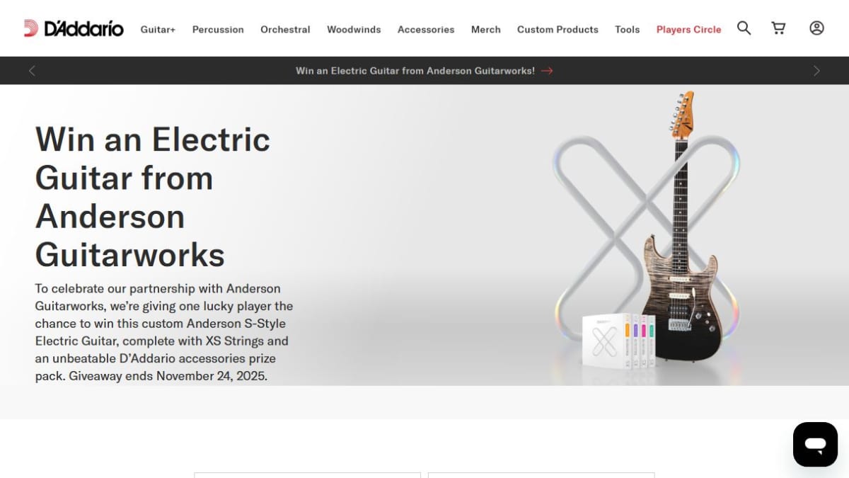The grand prize includes a unique Anderson S-Style Electric Guitar complete with a hardshell case. The package also features ten sets of D’Addario XS Electric Guitar Strings and various branded D’Addario gear like a hat, mug, and t-shirt.