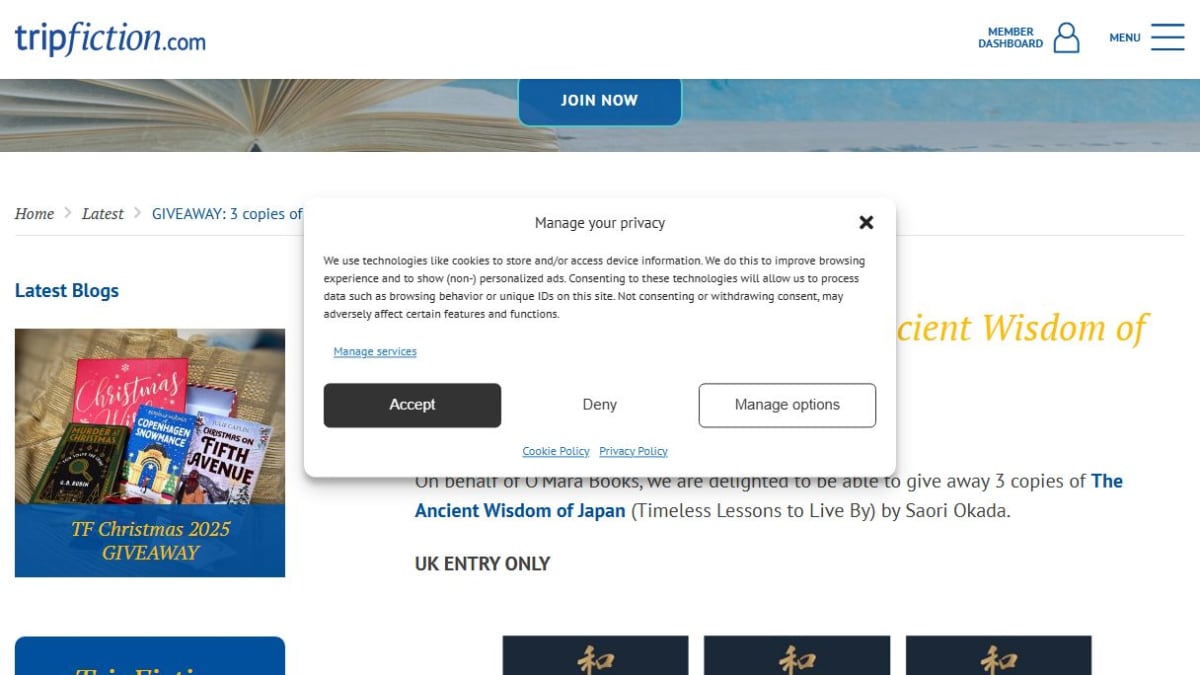 This giveaway offers copies of 'The Ancient Wisdom of Japan (Timeless Lessons to Live By)' by Saori Okada. The book compiles 60 quintessential Japanese lessons and philosophies, paired with traditional artworks, designed to help readers discover purpose and live intentionally.