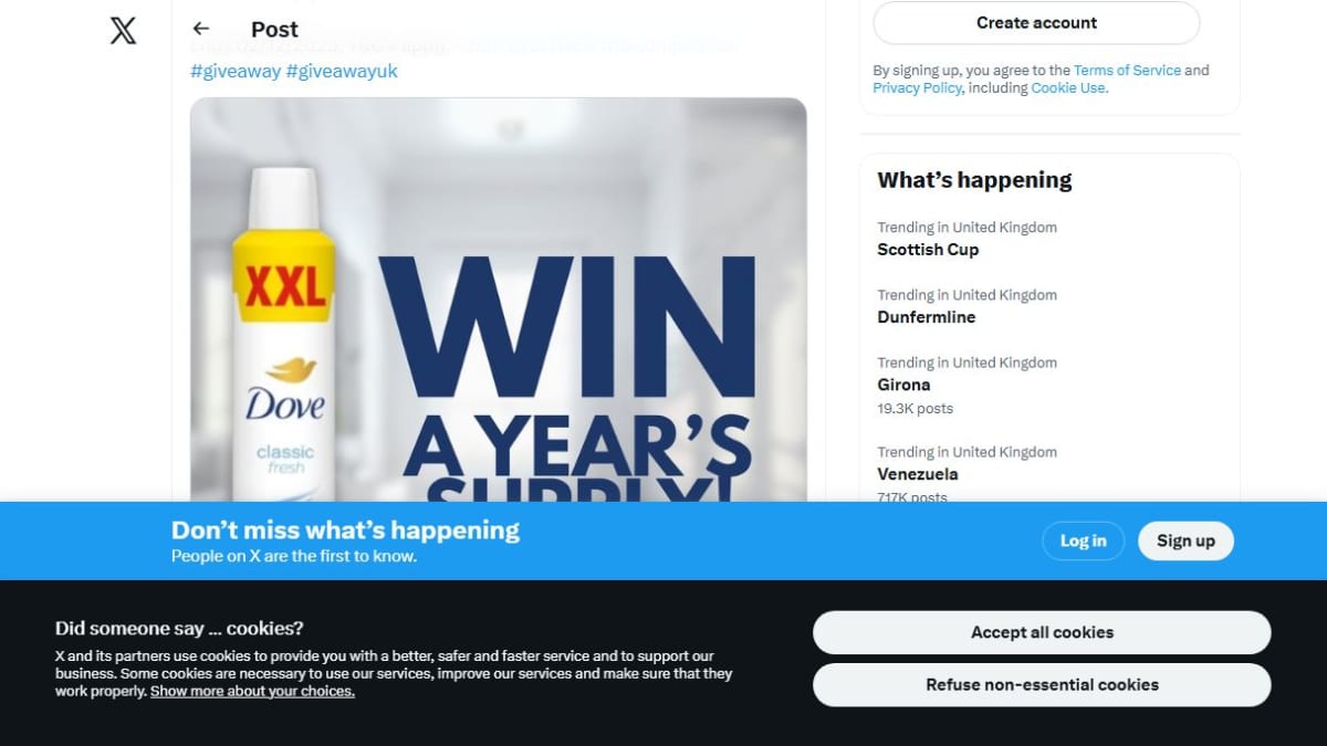 The prize is a full year's supply of Dove Classic Fresh deodorant. This is a personal product intended for daily use in hygiene and grooming routines.