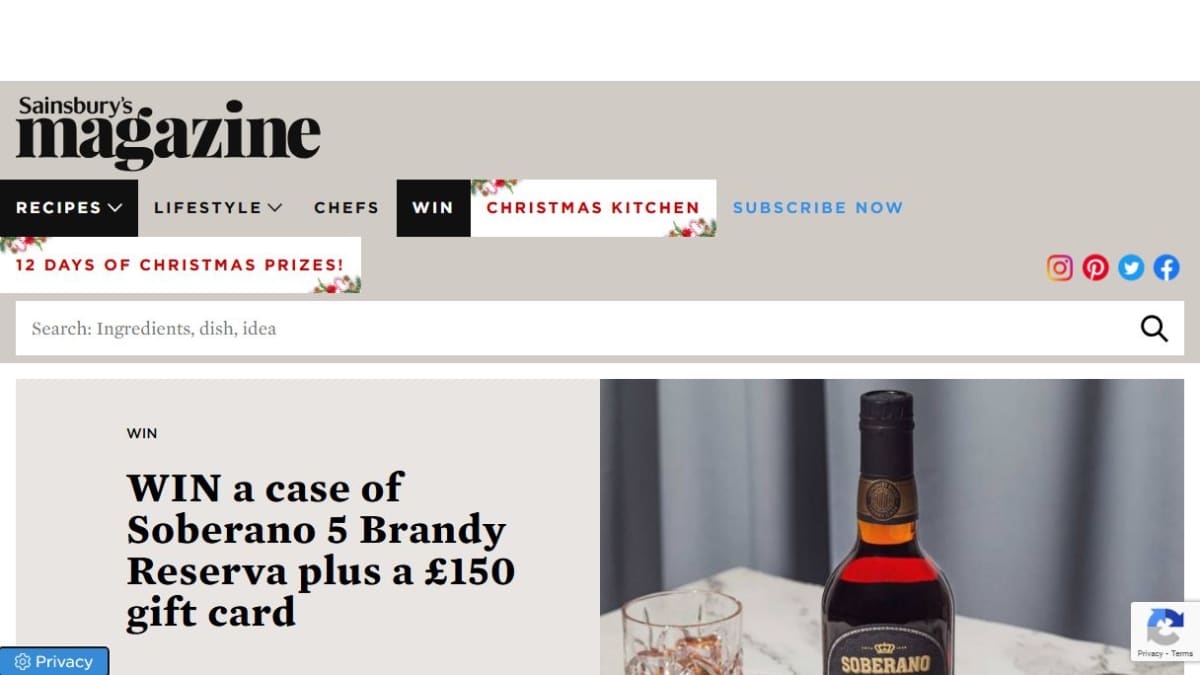 The winner will receive six bottles of multi-award-winning Soberano 5 Reserva Brandy, which has been matured for five years in Oloroso sherry casks. This is paired with a £150 gift card valid for use at Sainsbury's.