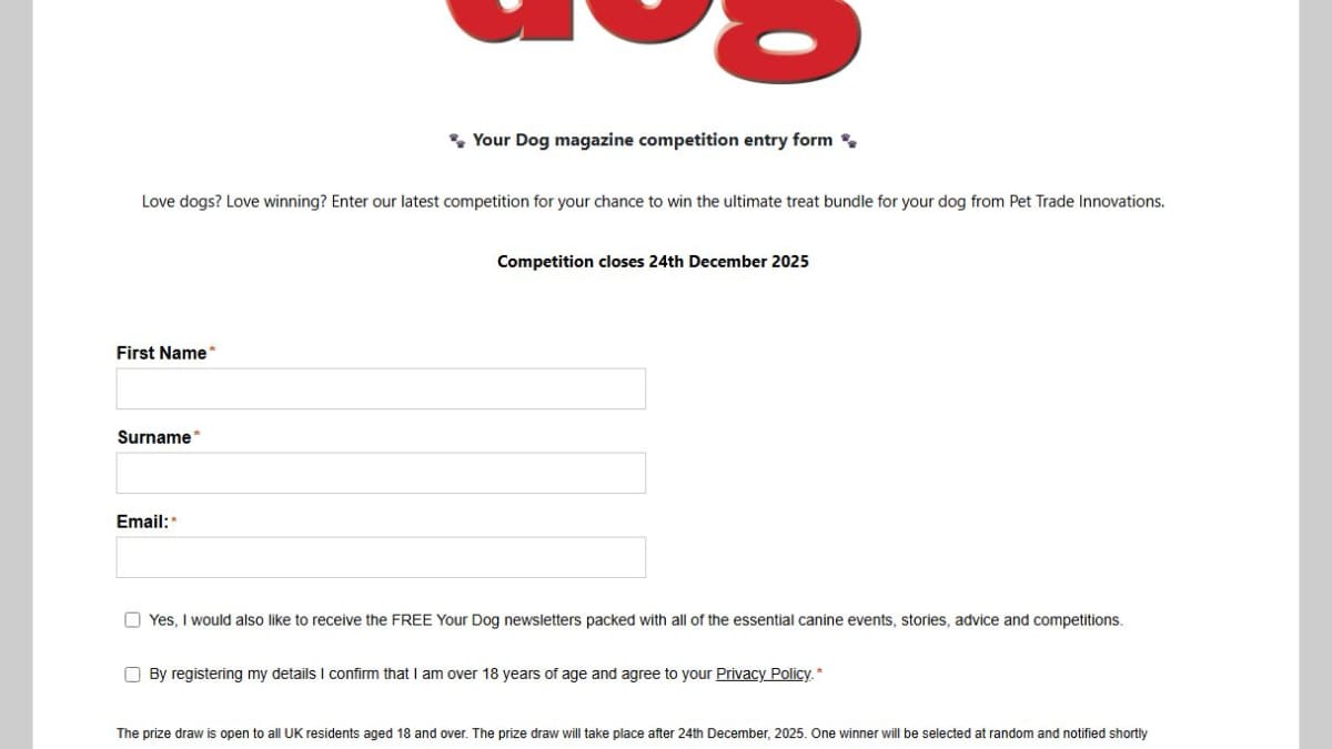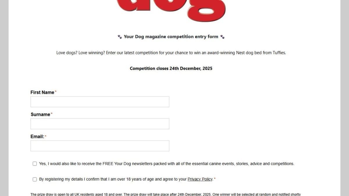 This competition offers one lucky winner an award-winning Nest dog bed made by Tuffies. The bed is highly regarded by Your Dog readers and constructed from durable, 100% waterproof ballistic nylon.