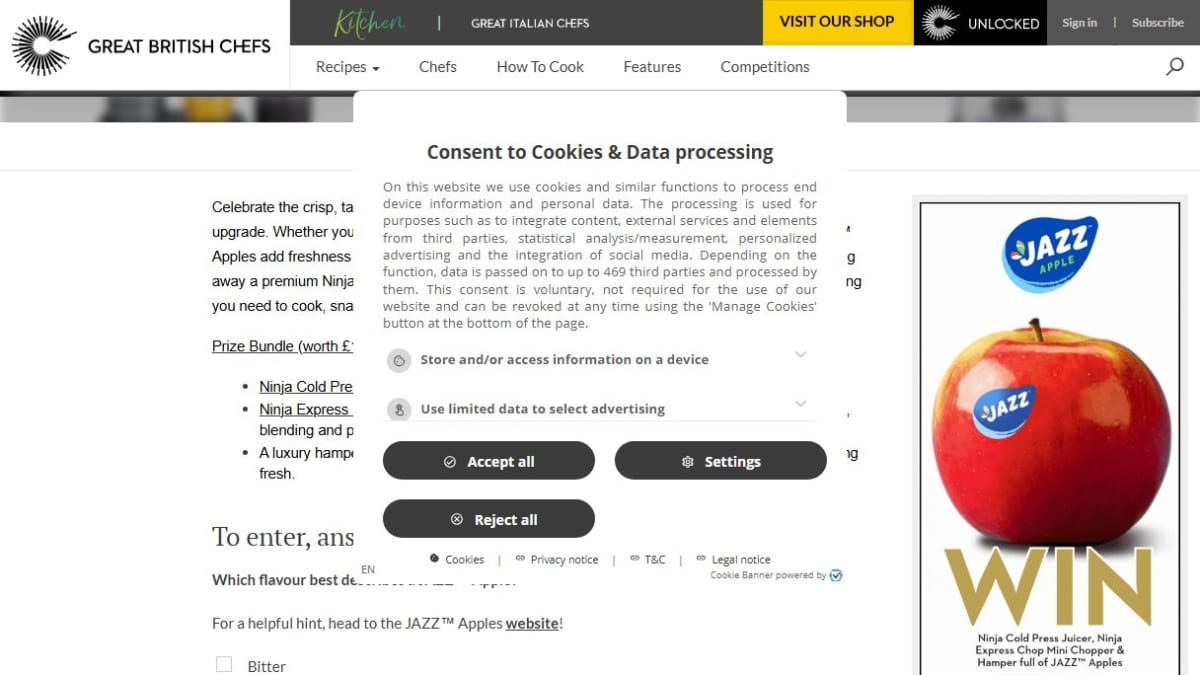 This prize includes a Ninja Cold Press Juicer and a Ninja Express Chop Mini Chopper for versatile food preparation. The bundle is completed with a luxury hamper filled with crisp and refreshing JAZZ™ Apples.