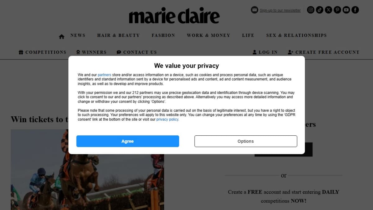This is a collection of prizes centered around horse racing experiences, including ownership shares, memberships, and race day tickets to various tracks. Additional prizes include consumer electronics and Amazon vouchers.