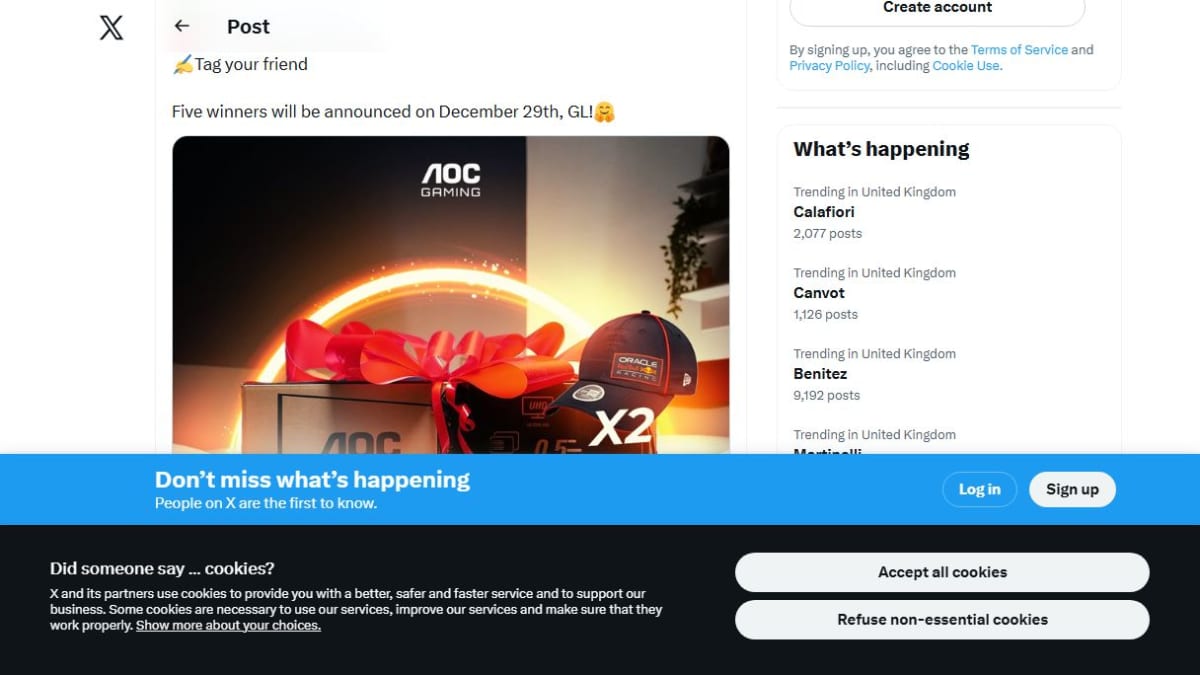 The prize is an Aoc U27g4r monitor, likely featuring a dual frame design. This display technology is intended for viewing or gaming purposes.