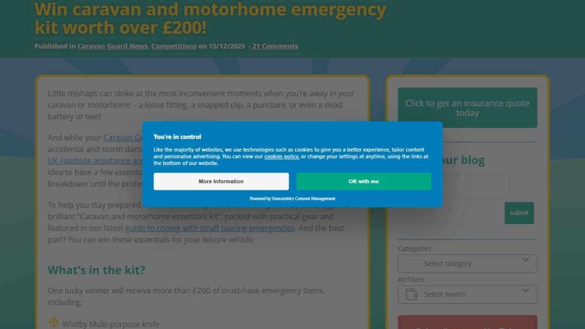 This comprehensive kit contains over £200 worth of practical gear designed to help users tackle temporary repairs and manage minor issues while caravanning or motorhoming. Items included range from a multi-purpose knife and head torch to a heavy-duty towing strap and tyre repair kit.