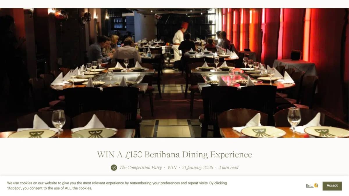 Two lucky winners will each receive a dining voucher valued at £150 to spend exclusively at the Benihana Chelsea teppanyaki restaurant. This prize offers an unforgettable night of 'eatertainment' right in the centre of the action.