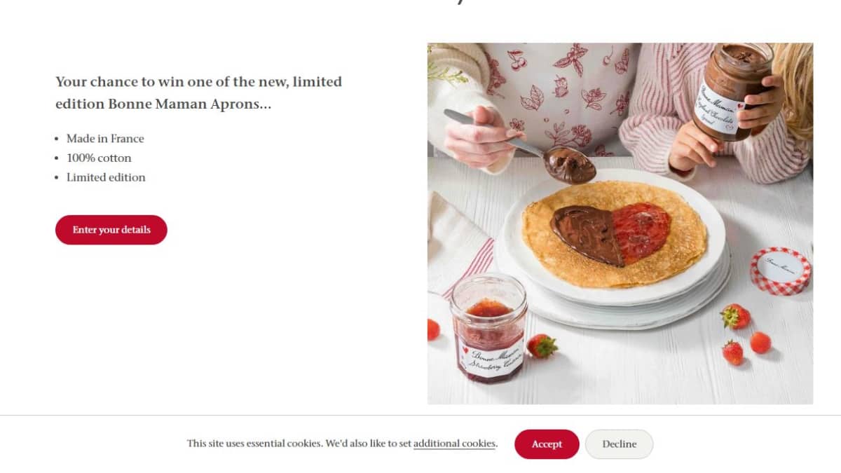 This prize is a limited edition apron made entirely of cotton. It is manufactured in France and offers a charming addition to any kitchen.