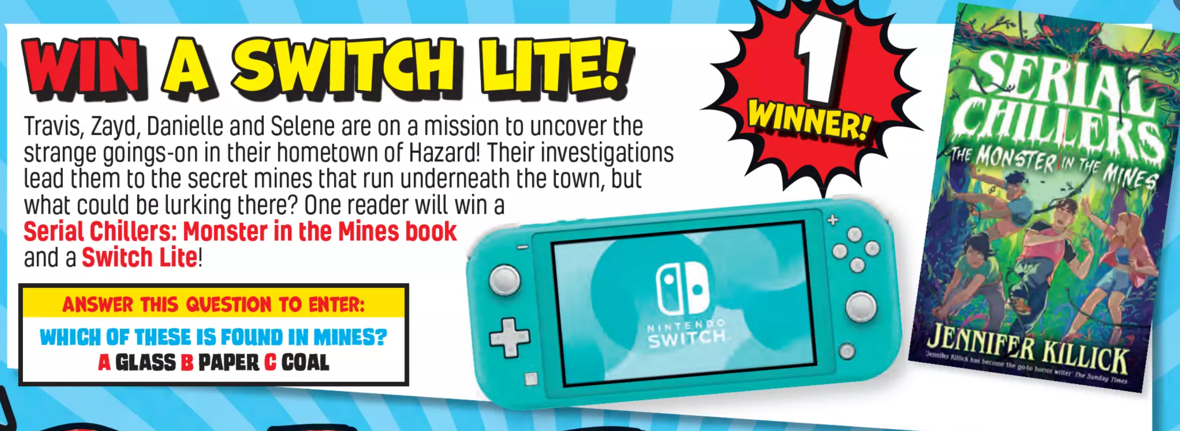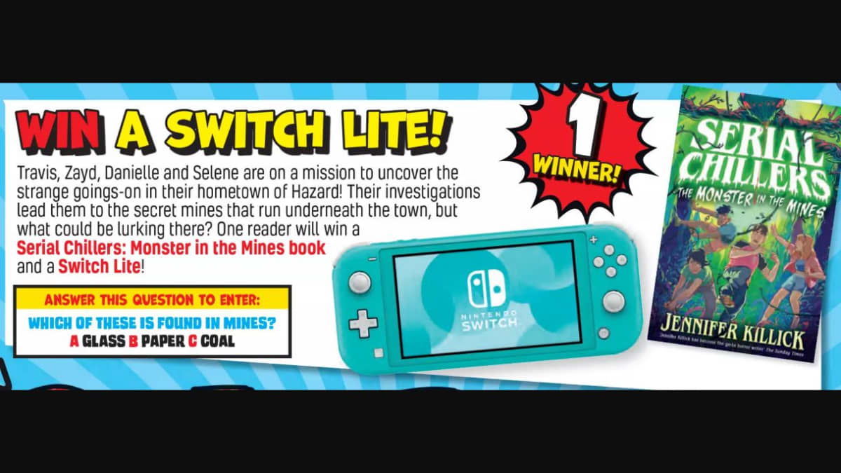 The prize being offered is a Nintendo Switch Lite console. This portable handheld device is perfect for gaming on the go.
