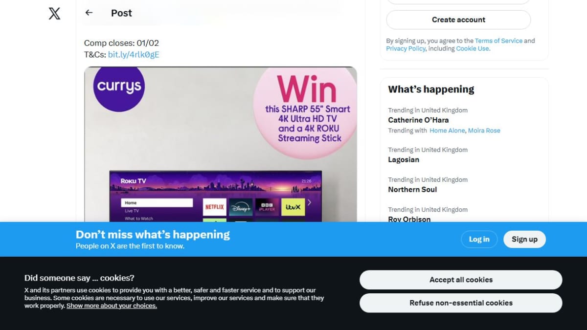 The prize package includes a Sharp Smart 4K Ultra HD HDR LED TV and a bonus Roku Streaming Stick to enhance the viewing experience. This set promises a significant upgrade for any living room entertainment setup.