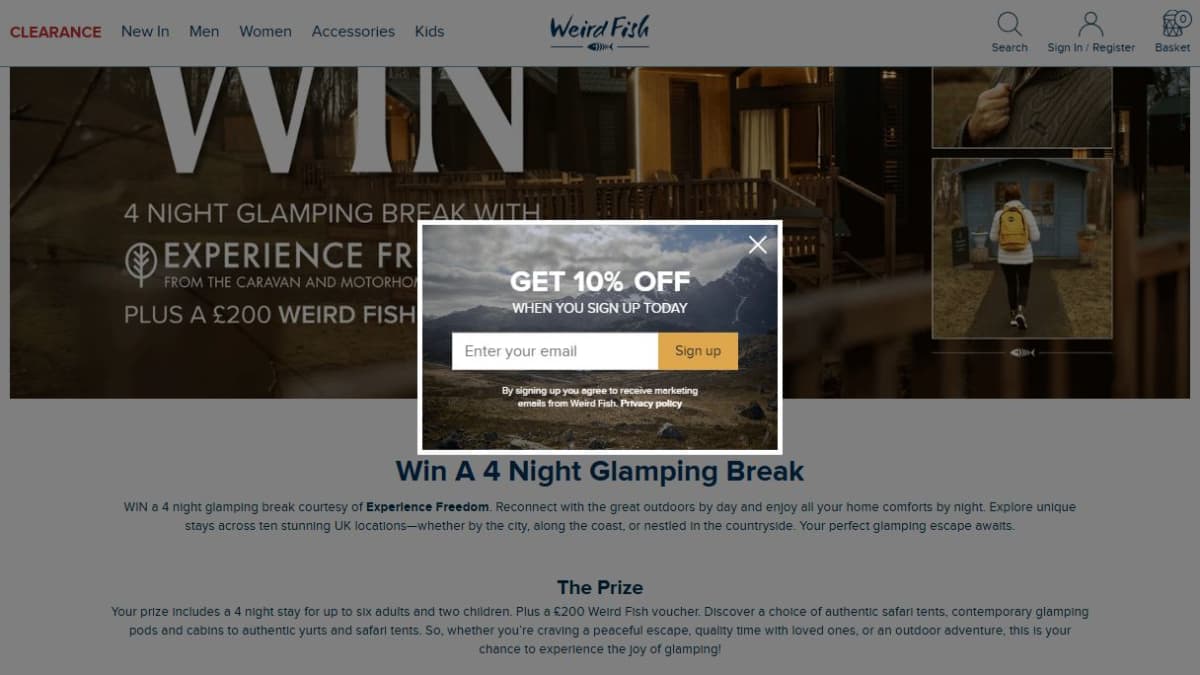 The prize includes a 4-night glamping stay for up to six adults and two children at a choice of stunning UK locations. Additionally, the winner receives a £200 voucher from Weird Fish.