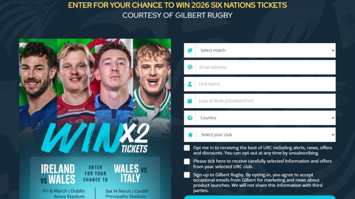 The winner receives a pair of tickets to an international rugby match. Options include attendance at the Ireland vs Wales game in Dublin or the Wales vs Italy game in Cardiff.