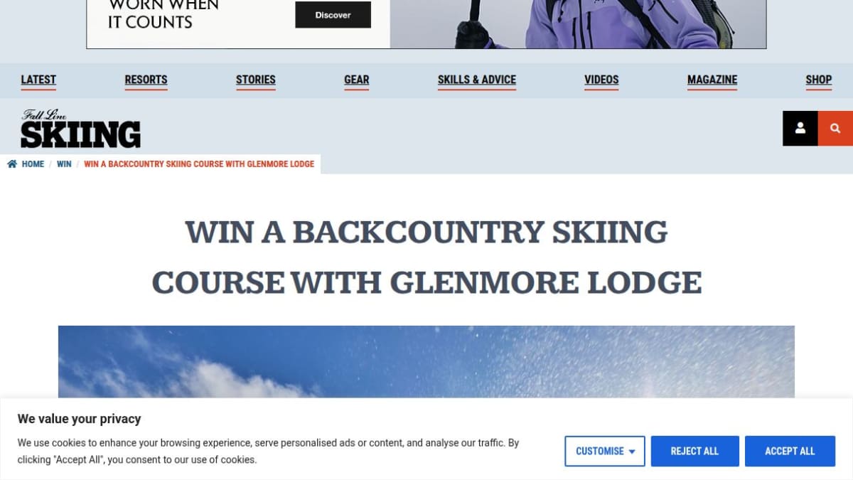 The prize includes two spots on a chosen two-day Backcountry Skiing course and two nights of bed and breakfast accommodation at Glenmore Lodge in Scotland. Participants receive expert coaching and access to premium touring gear for the duration of the course.