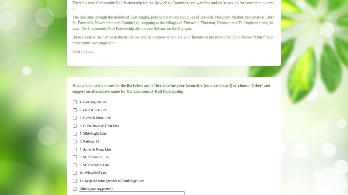 The prize consists of a complimentary travel pass valid for four people traveling together. This pass covers a return journey in Standard Class on Greater Anglia services along the Ipswich to Cambridge line in either direction.