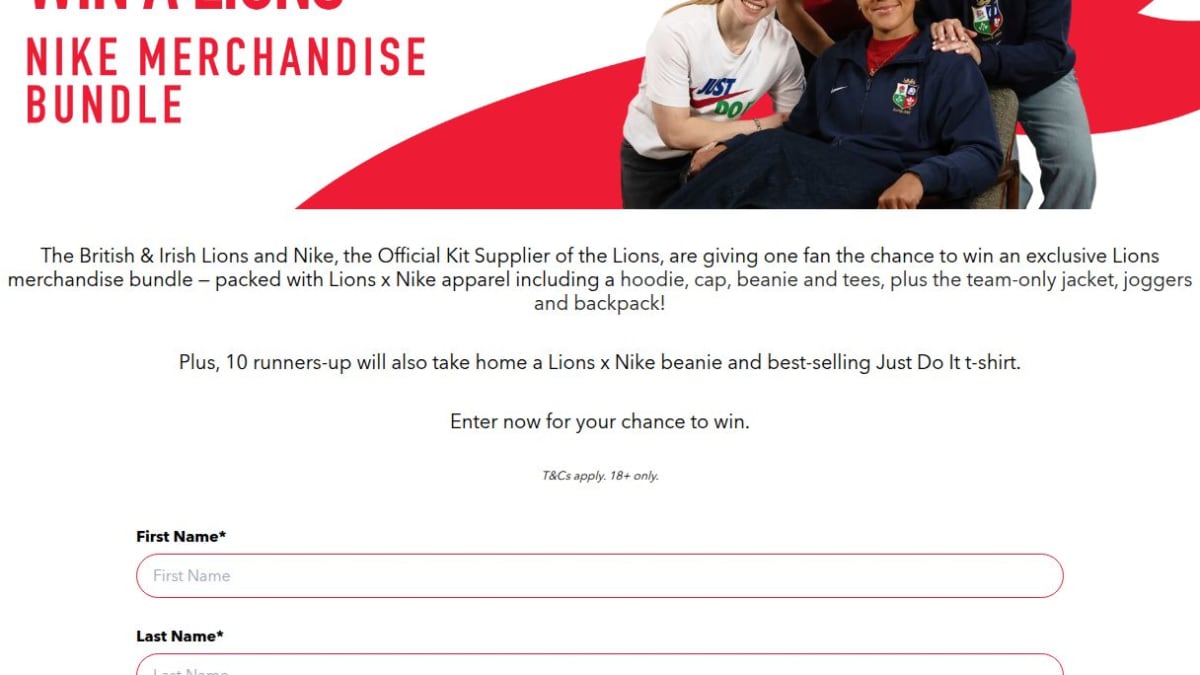 This exclusive bundle features Lions x Nike apparel, including a hoodie, cap, beanie, and tees. The grand prize winner also receives the team-only jacket, joggers, and backpack.