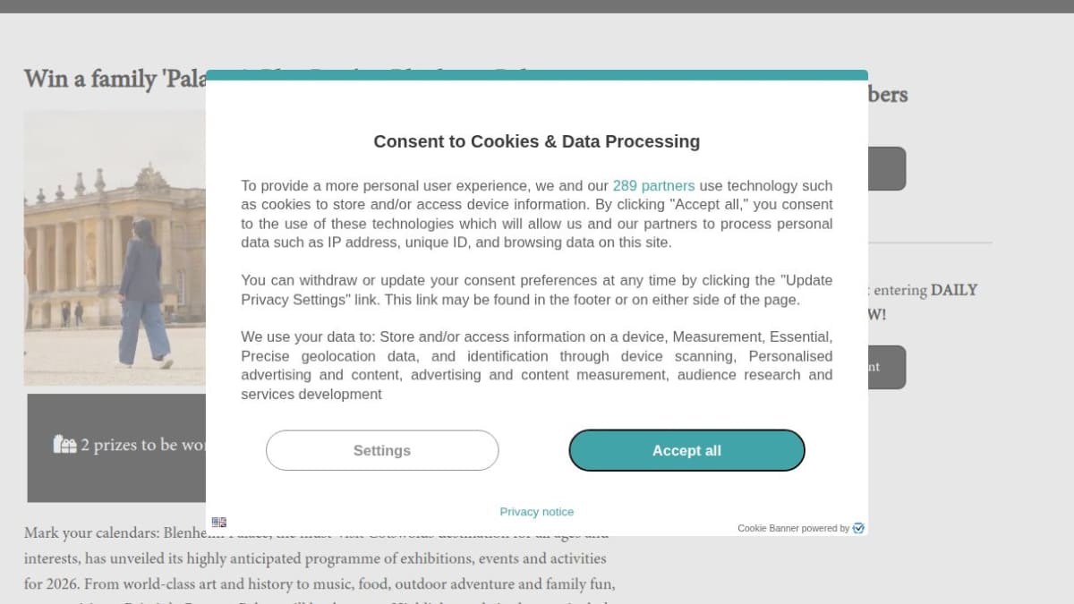 The prize is a Family 'Palace and Play Pass' which admits two adults and two children for entry to Blenheim Palace. This pass grants access to the palace grounds and play areas for a day of family fun.