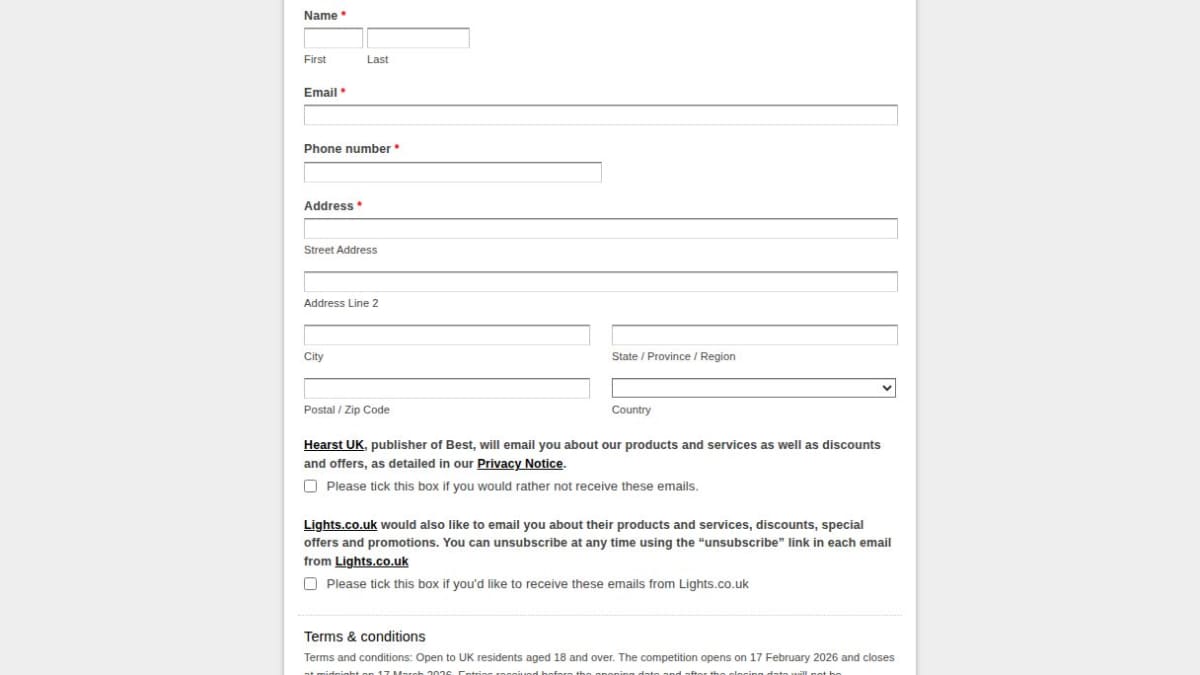 The prize is an Isara Floor Lamp manufactured by Lindby, supplied courtesy of Lights.co.uk. Five winners will be chosen randomly from all eligible entries.