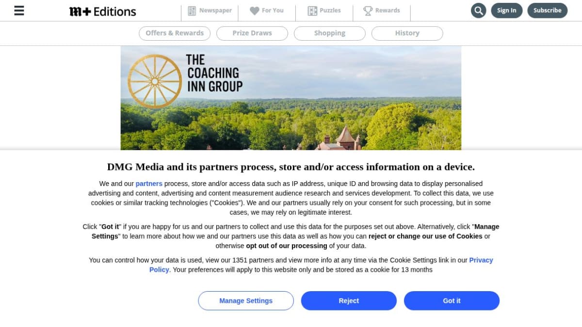 The prize is a £1,500 voucher for The Coaching Inn Group, redeemable for accommodation, breakfast, dinner, beverages, and travel. The winner can choose a stay for two at one of five distinct locations offering rich heritage and countryside charm.