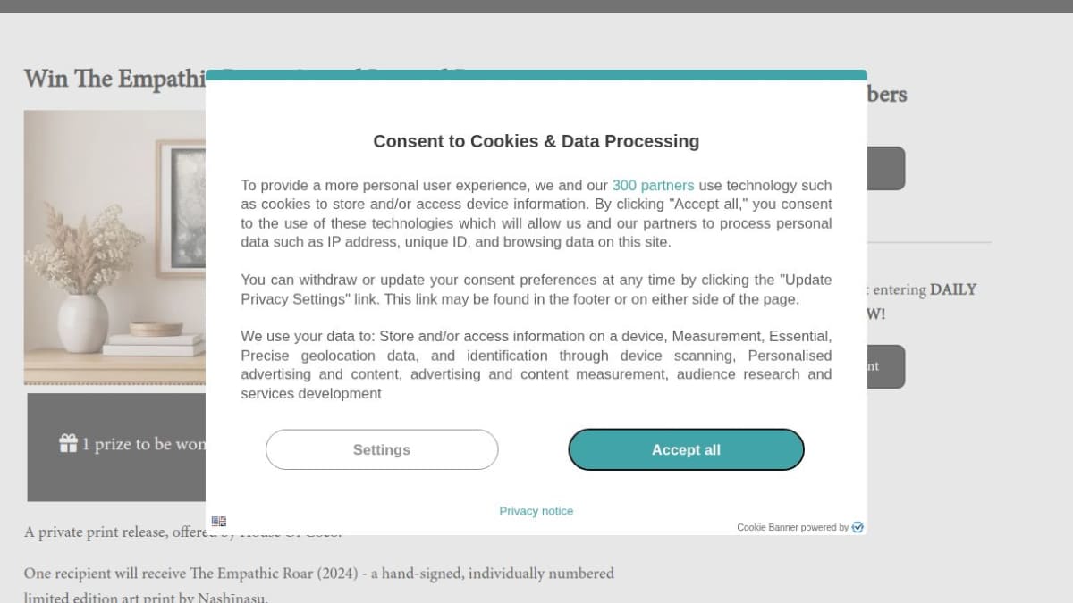 The prize is a limited edition art print titled The Empathic Roar (2024) by Nashinasu. This print is 21 x 30 cm, printed on Hahnemühle Photo Rag paper using archival pigment inks, and comes hand-signed and individually numbered with a Certificate of Authenticity.