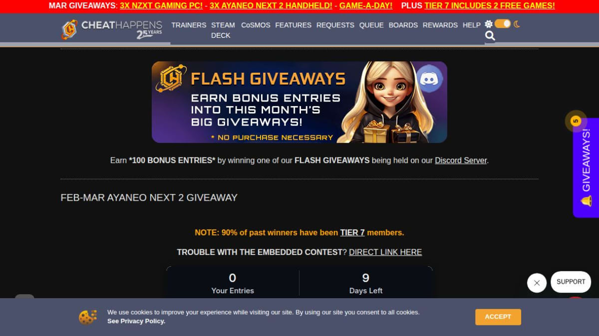 Three lucky winners will receive an AYANEO NEXT 2 handheld gaming device or an equivalent amount in PayPal cash. This giveaway is open worldwide, and entrants are responsible for any applicable duties or taxes upon receipt if the hardware prize is chosen.