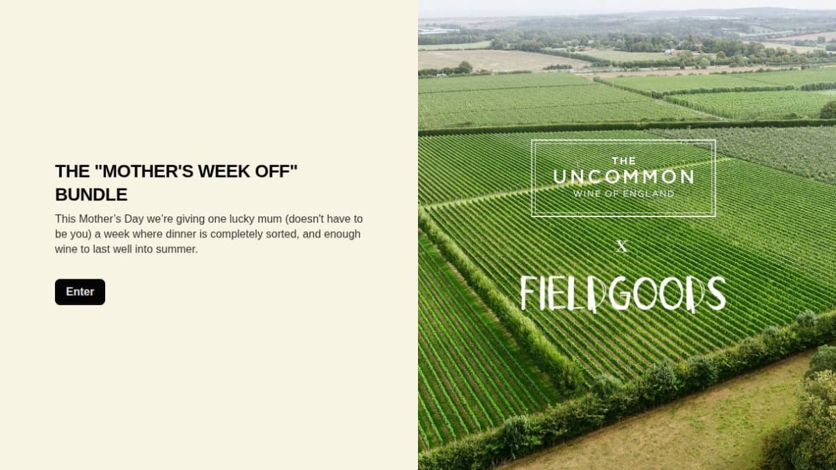 This prize includes a selection of seven ready meals (main, side, and dessert portions) from FieldGoods. Additionally, the winner receives 32 cans of English wine from The Uncommon.