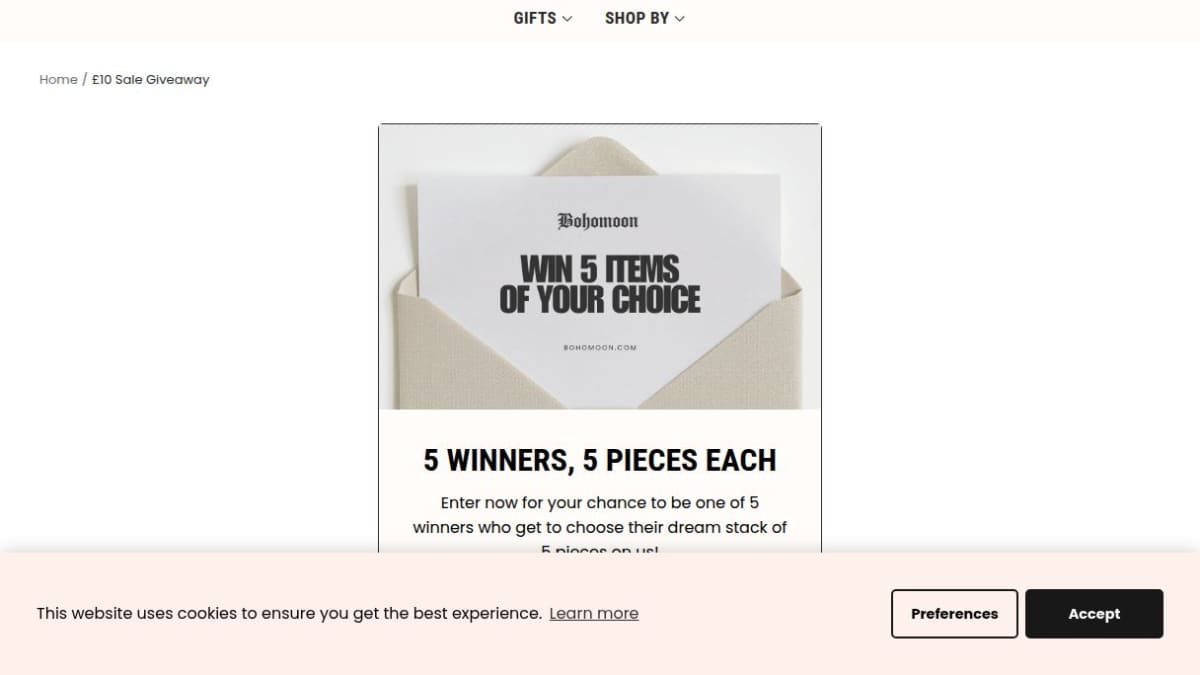 The prize includes a £200 Oliver Bonas Gift Card for shopping, a Pamper Hamper gift box of biscuits and goodies, and an afternoon tea for two with prosecco at Biscuiteers in London.