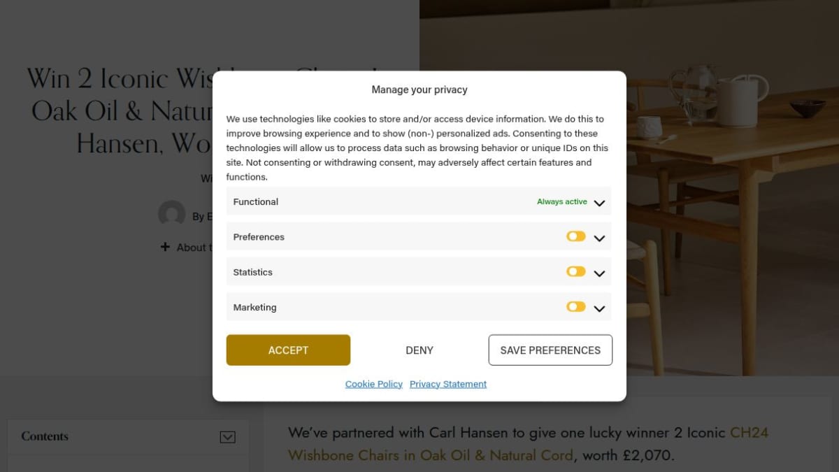 The prize consists of two Iconic CH24 Wishbone Chairs produced by the renowned Danish manufacturer Carl Hansen & Søn. These chairs are crafted in Oak Oil with Natural Cord, representing timeless design and high-quality Danish furniture.