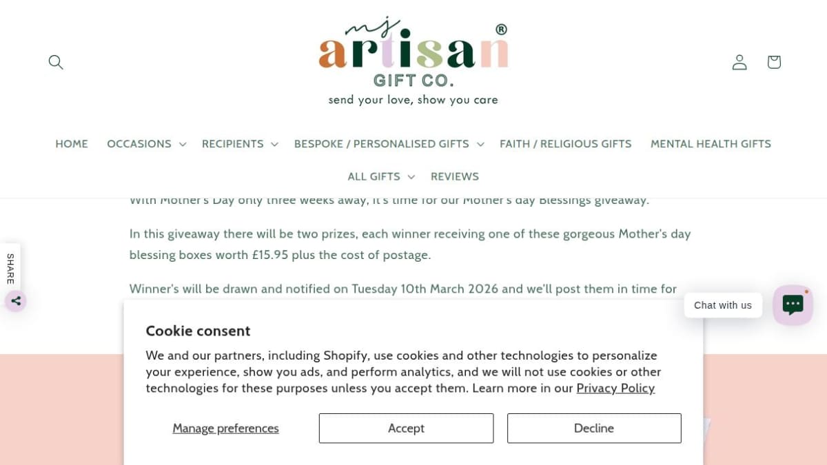 Two winners will each receive a beautifully curated Mother's Day Blessing Box. The estimated value of the box itself is £15.95, exclusive of postage costs.