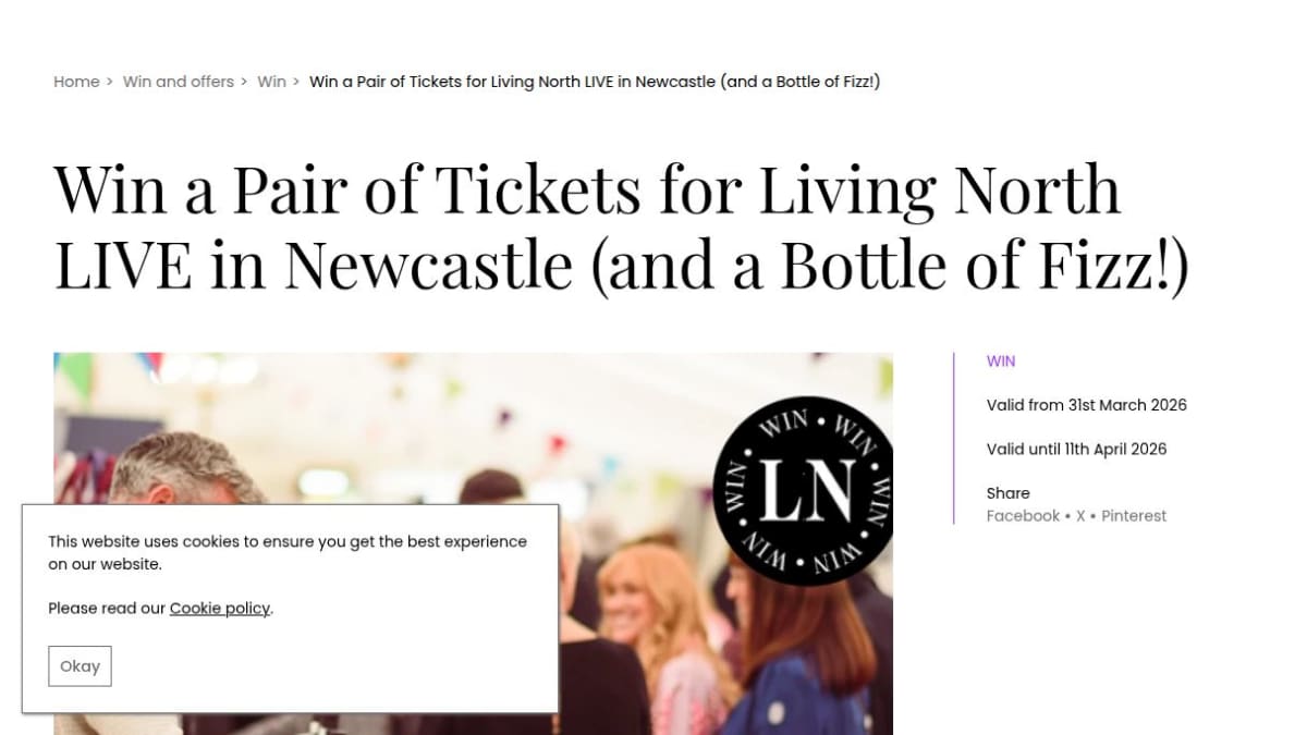 The prize includes entry for two people to the Living North LIVE event in Newcastle, scheduled from April 24th to 26th. Additionally, the winner will receive a complimentary bottle of Prosecco.