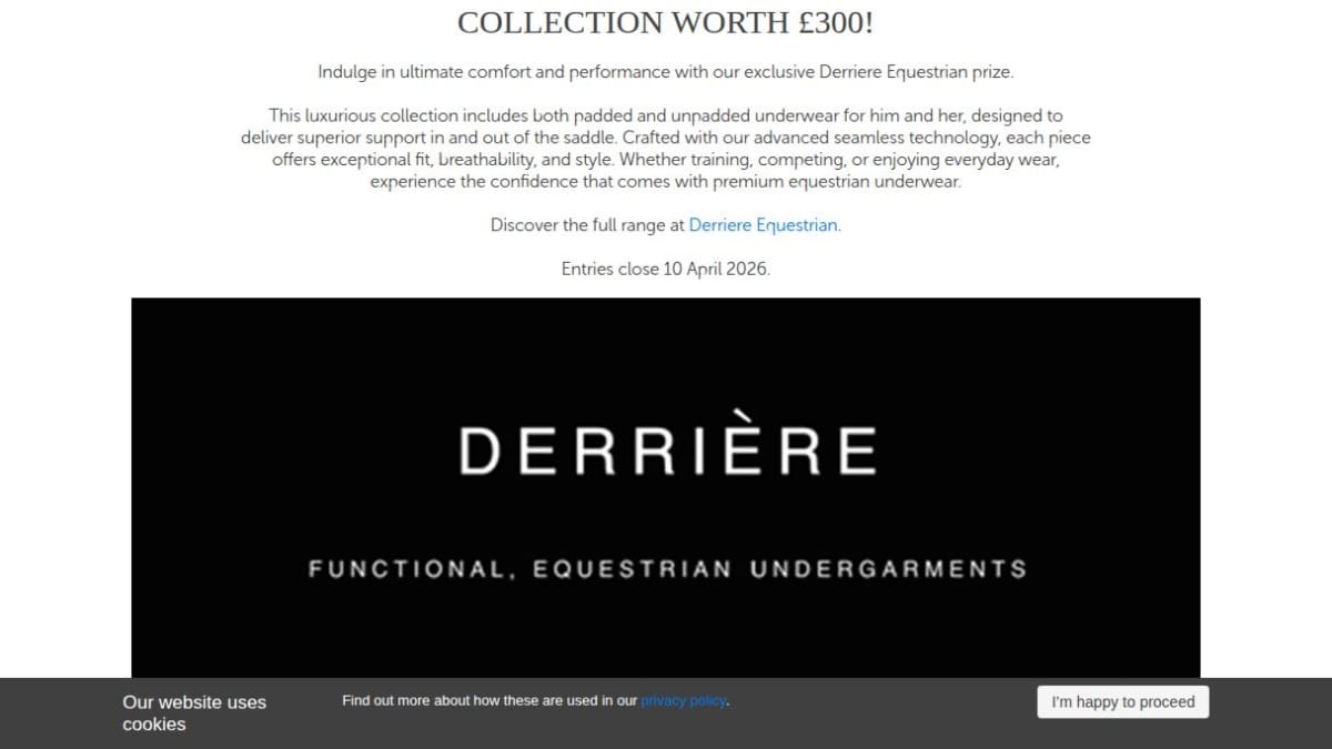This prize offers a holiday escape inspired by the Cornish coast, provided in partnership with Aspects Holiday and Whistlefish. The prize encompasses a trip reflecting the brand's commitment to quality and beautiful coastal inspiration.