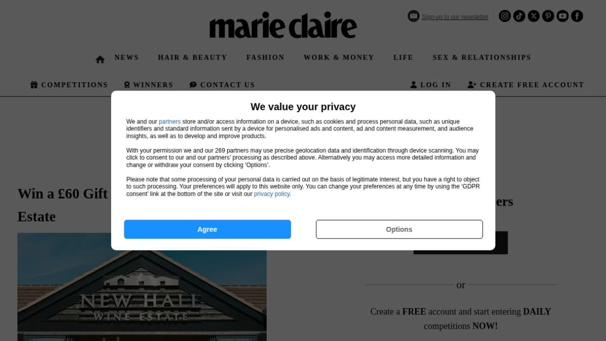 The prize is a £60 gift voucher redeemable at the New Hall Wine Estate. It can be used towards a Tour & Tasting Experience or for purchasing bottles through their website.