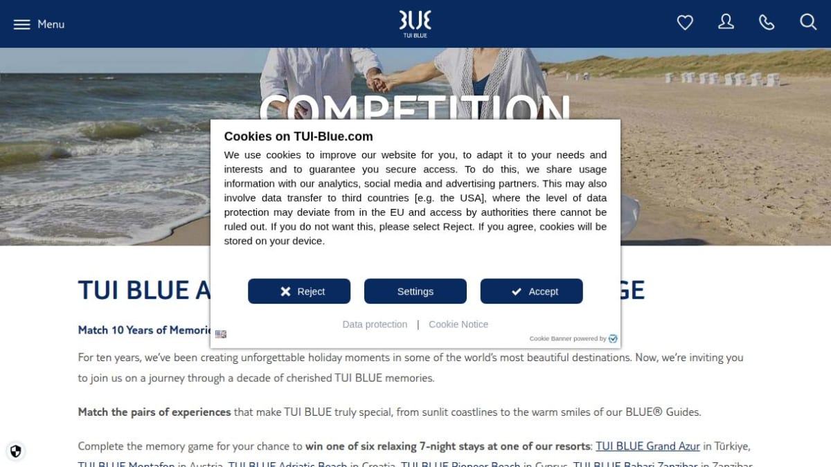 Six winners will each receive a random hotel voucher for a 7-night stay for two people at one of the specified TUI BLUE resorts. Prize elements vary, including options for All Inclusive or just breakfast board, and travel costs are excluded.