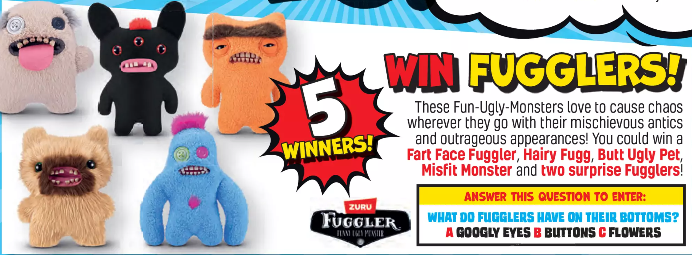 The prize is a bundle featuring Fugglers merchandise, associated with Beano Issue 4326. This collection offers fun, collectible items related to the popular comic.
