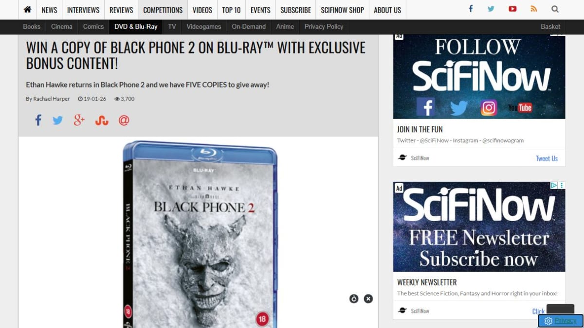 Five lucky readers have the chance to win their own copy of BLACK PHONE 2 on Blu-ray. The movie features Ethan Hawke and tells the story of two teens confronting a killer from beyond the grave.
