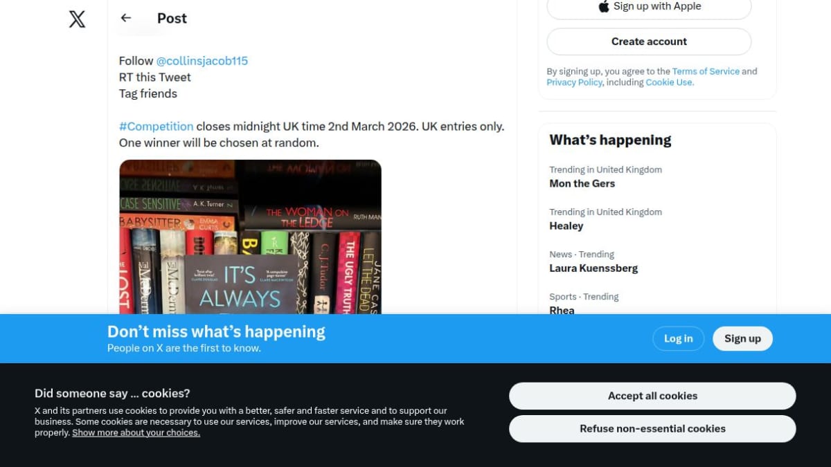 This prize is one physical copy of the new thriller novel titled 'It's Always the Husband' by C.L. Taylor.