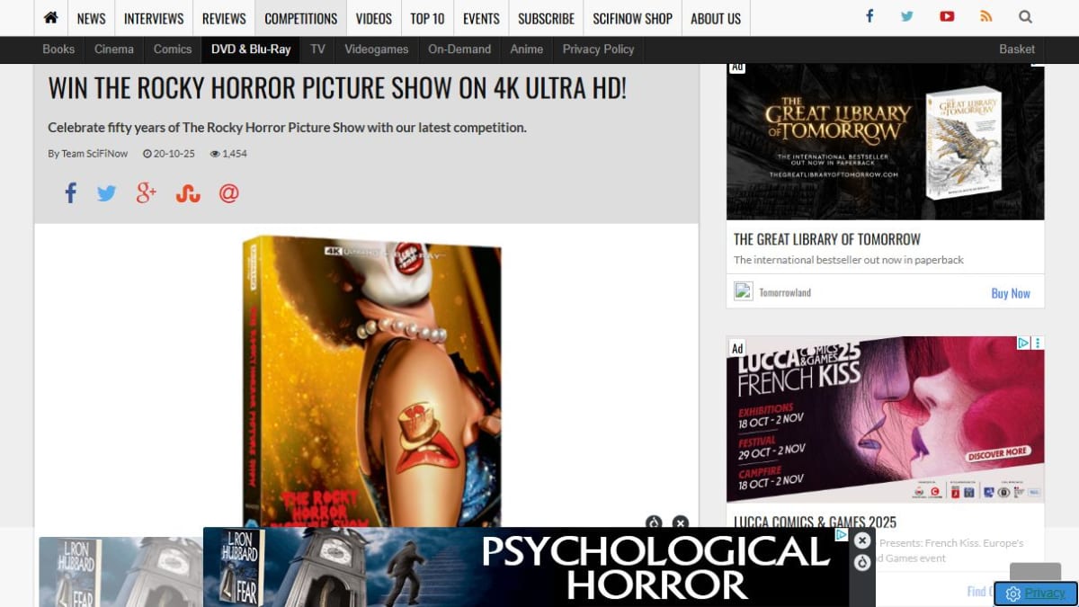 Two copies of the classic musical 'The Rocky Horror Picture Show' are being given away on 4K Ultra HD format. This prize celebrates the film's fifty-year anniversary, which redefined moviegoing with its bold characters and rock 'n' roll soundtrack.