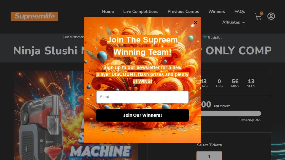 A Ninja Slushi Machine for making frozen drinks. A cash alternative of £200 is also available.