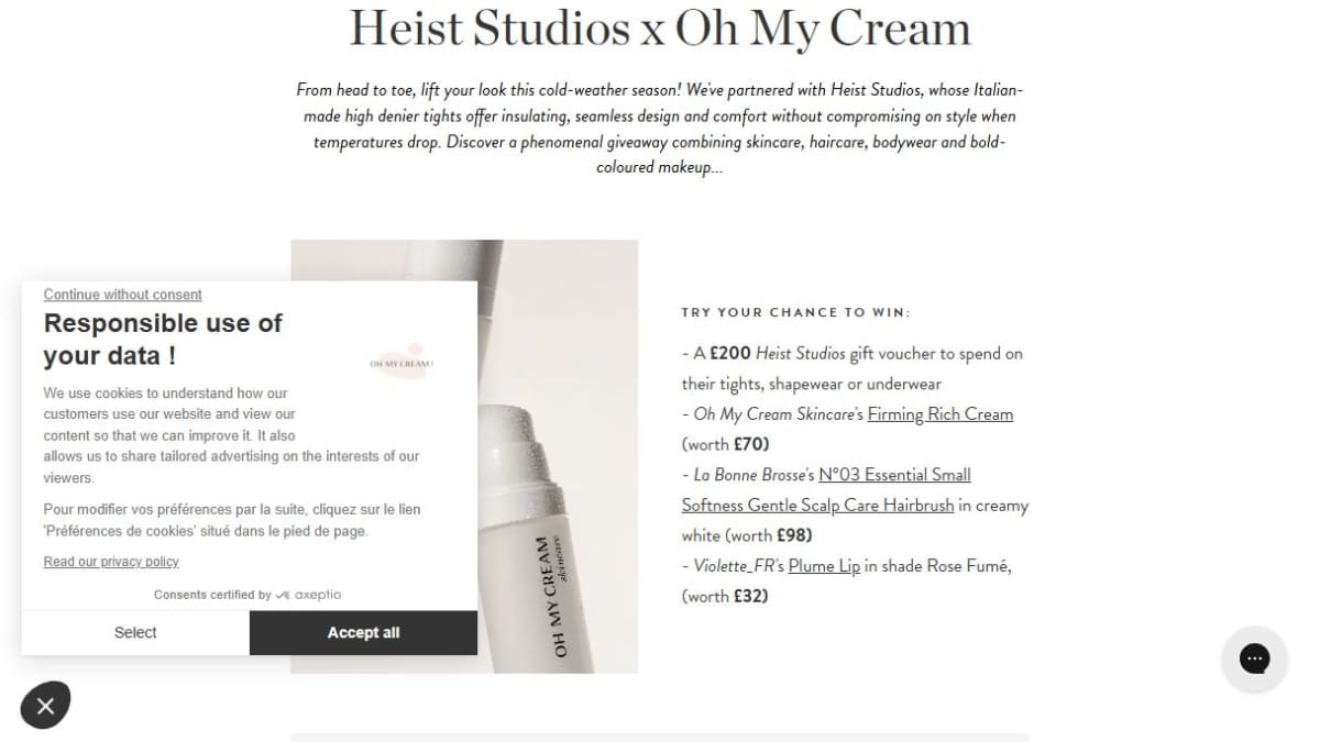 This package includes a £200 gift voucher usable for tights, shapewear, or underwear from Heist Studios. Additionally, it contains a Firming Rich Cream, a specialized scalp care hairbrush, and a luxury lip product.