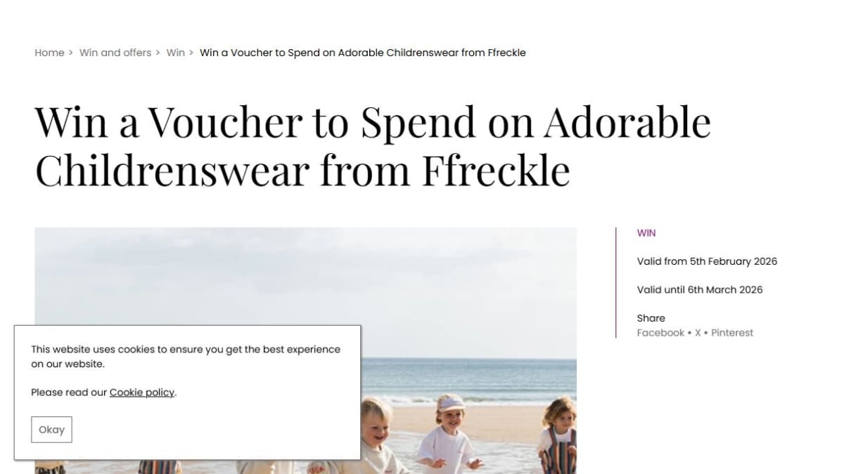 This prize offers a £30 voucher to spend on adorable children's clothing items. It allows the winner to select items from the Ffreckle range.