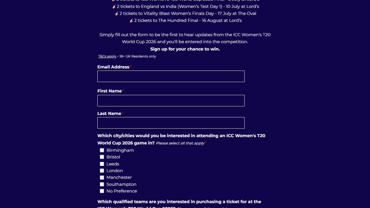 This prize consists of two tickets to attend the ICC Women’s T20 World Cup 2026 Final, which is scheduled for July 5th at Lord's Cricket Ground. These tickets are part of a larger package opportunity for an unforgettable summer of women’s cricket.